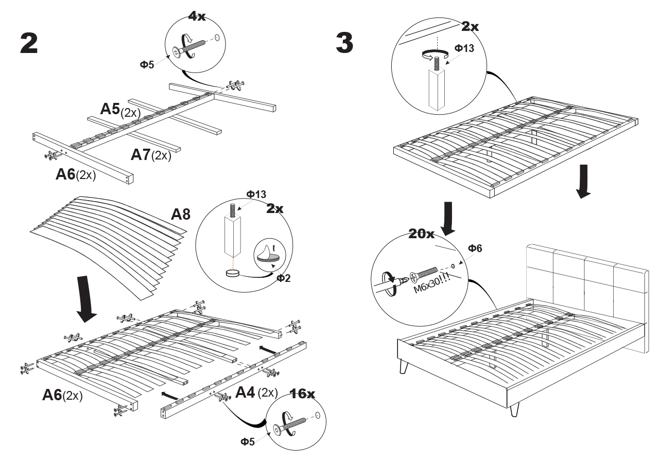 Спинка у изголовья и изножье. Эти предметы не являются обязательными и служат скорее для украшения и для повышения комфорта. Например, при чтении книги перед сном намного удобнее опираться на высокую мягкую спинку. А край эстетичных ножек зрительно отделяет спальное пространство от всей спальни и являются акцентом, от которого ваш интерьер только выиграет.
